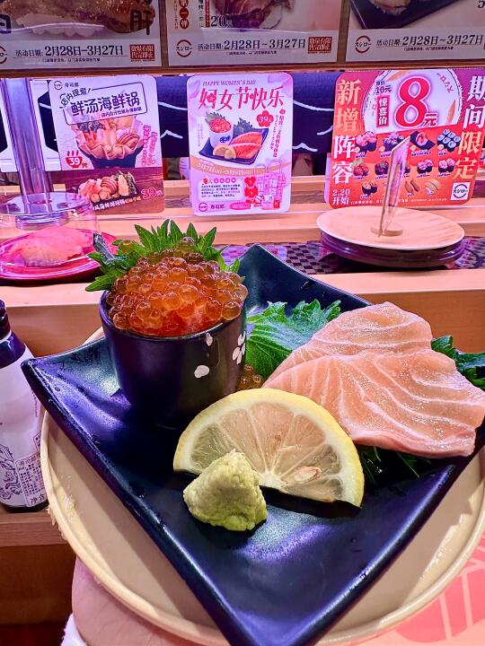 阿郎你真的很会拿捏女生的小心思!!! 39软妹币就能吃到精致三文鱼刺身拼盘! 正好适合精致的女神胃👸 刺身鲜美柔嫩!好好食🤤 还有8R吃焦糖鹅肝, 连吃4个不腻歪!👍 吃完还有精致🧧袋拿,好开心呀🥰