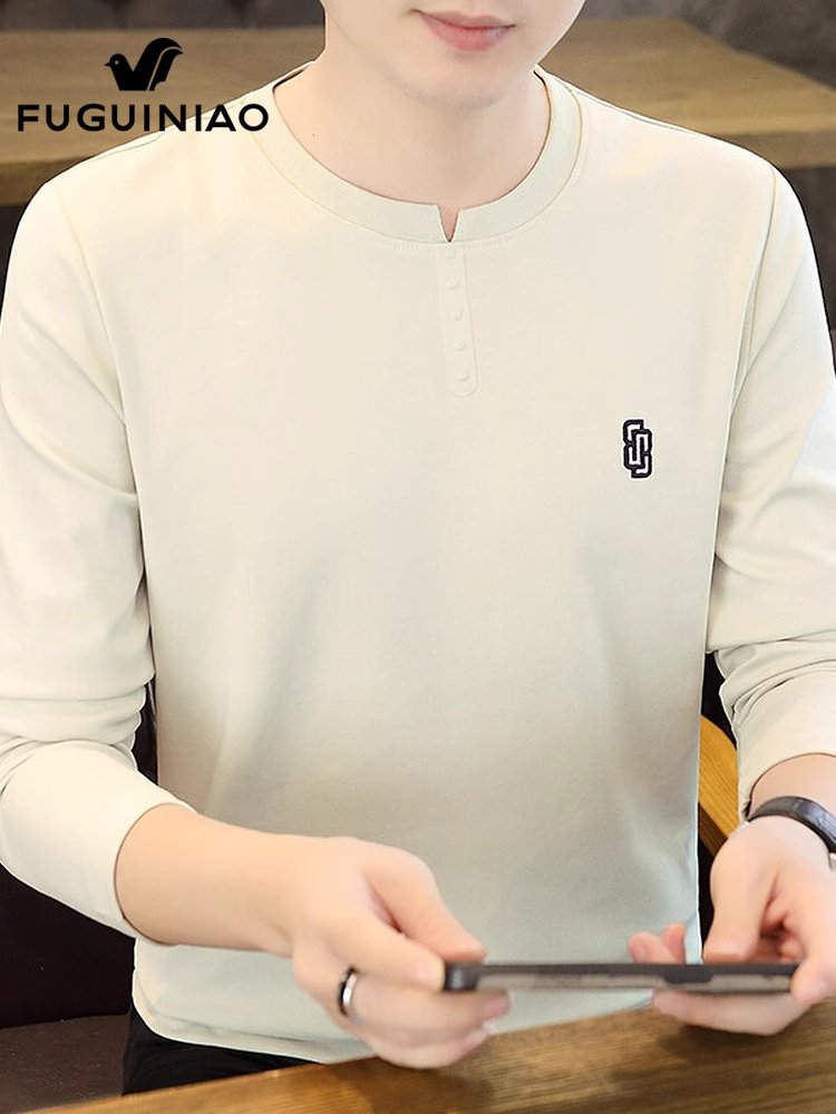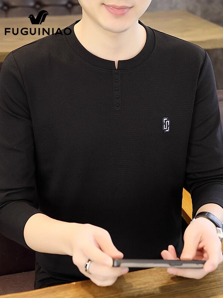 富贵鸟男士长袖t恤新款潮流百搭上衣服春季休闲圆领卫衣男