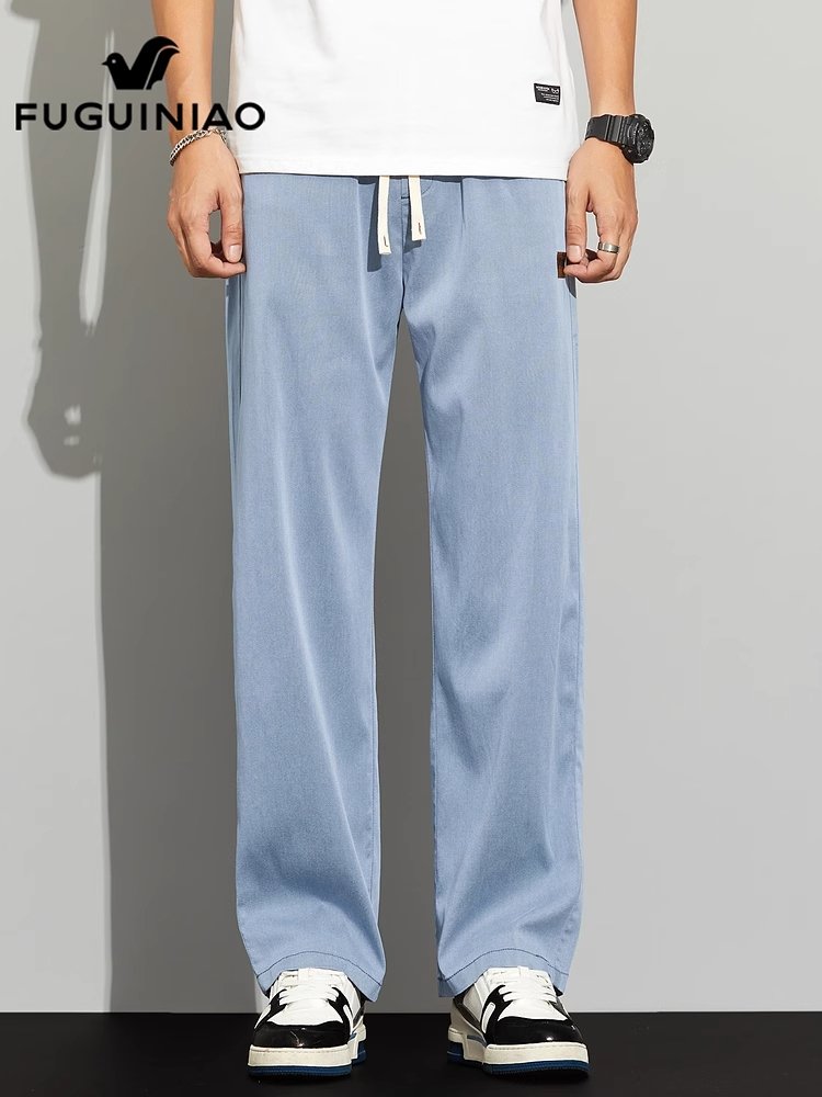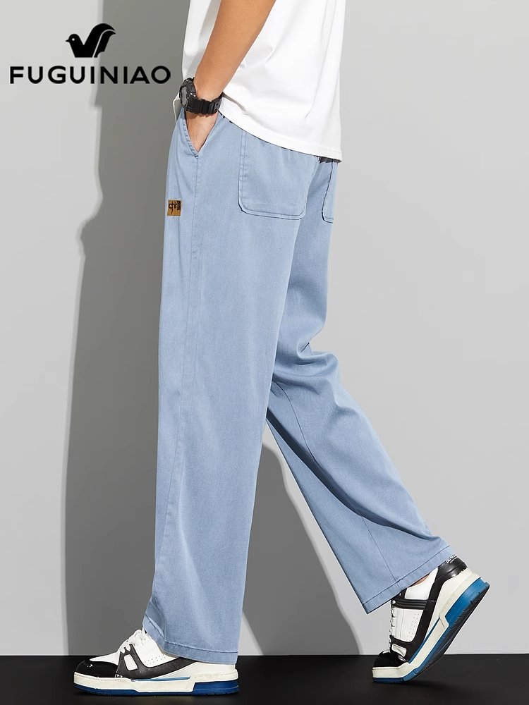 富贵鸟莱赛尔休闲裤男士宽松直筒运动裤春季新款阔腿长裤子男