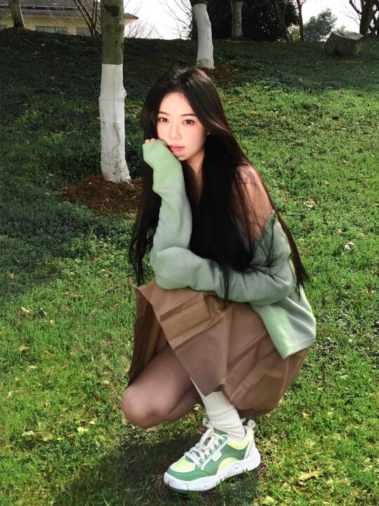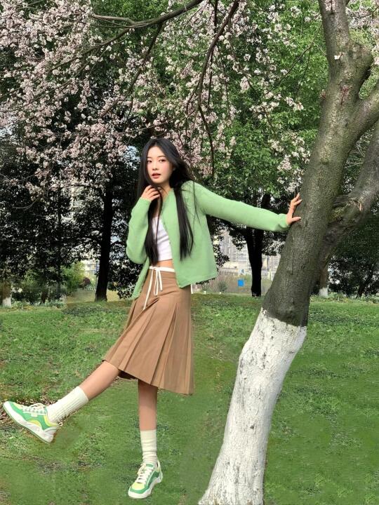 春天到啦 花花草草都长出来了 绿意盎然~🌲 春天真的很适合绿色系穿搭 整个人都看起来充满生机 今天绿色开衫搭配FILA曲奇鞋 浅绿➕芥菜黄的配色 和春日景色完美呼应 鞋底还有🍪饼干的小设计🍪 真的很可爱~