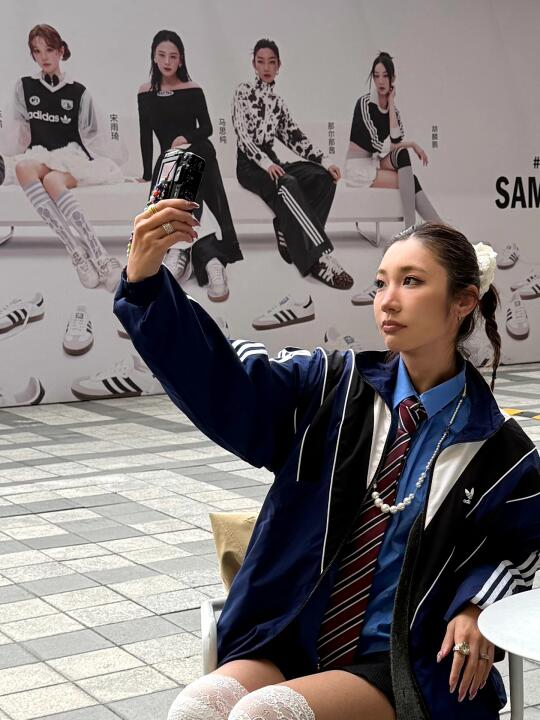 吴艳妮在成都穿着短裤大腿看起来很粗壮,表情自信又张扬