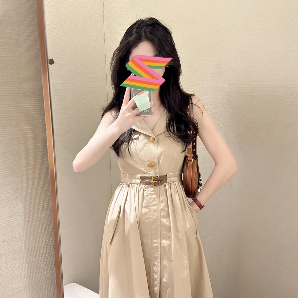 海边度假裙子宫廷风气质蕾丝领无袖连衣裙