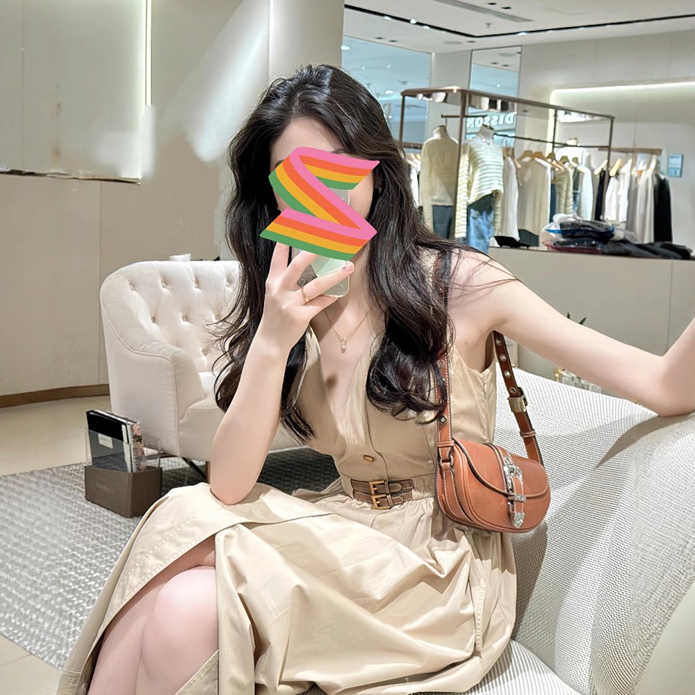 春季高级感法式气质V领连衣裙韩系收腰裙子