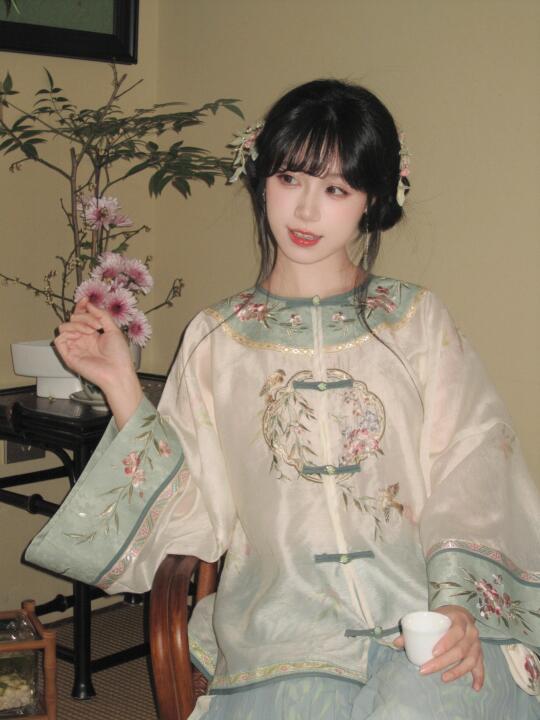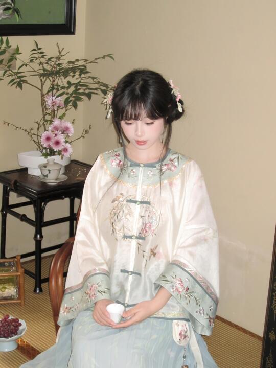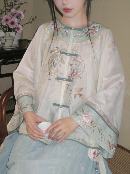 穿漂亮新衣服来闺蜜家做客啦 清新淡雅的颜色,真的好适合春天呀 刺绣上也做了非常有春日感的柳叶、黄鹂、桃花🌸 喜欢喜欢(✪▽✪)