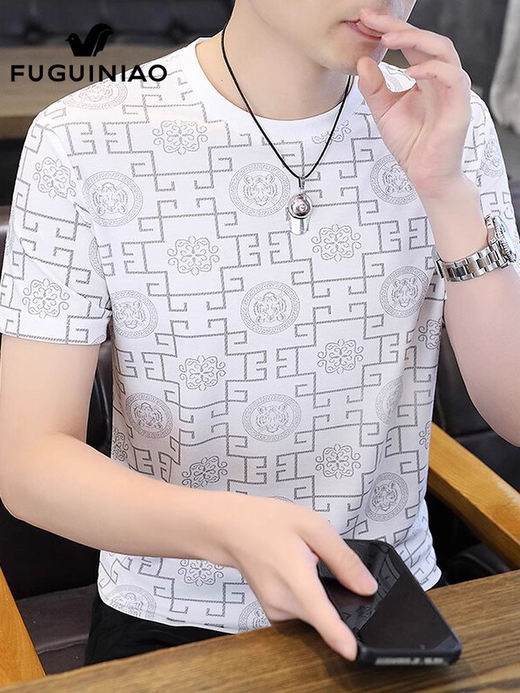 富贵鸟冰丝短袖t恤男士夏季薄款凉感透气上衣服休闲圆领体恤男装