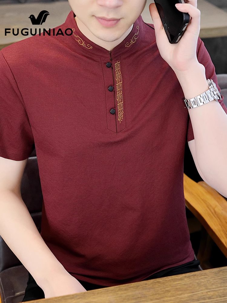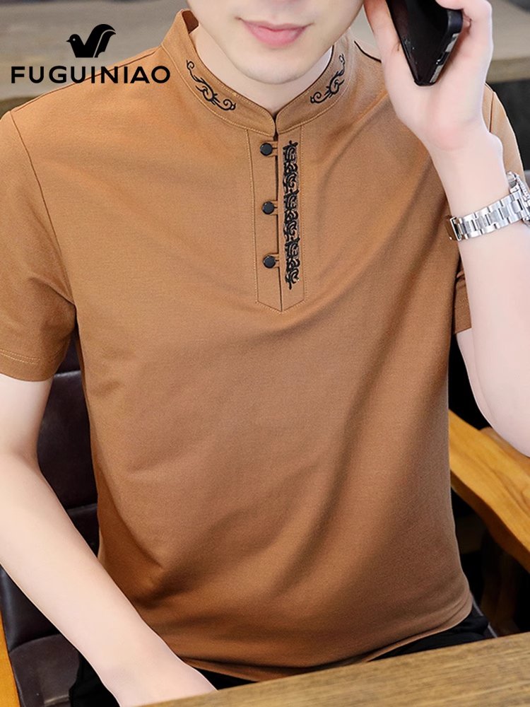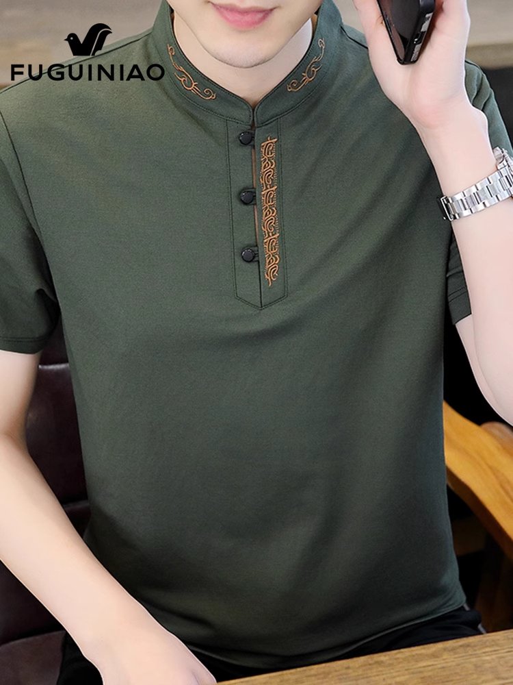 富贵鸟夏季短袖Polo衫男士中国风立领上衣新薄款休闲半袖t恤男装