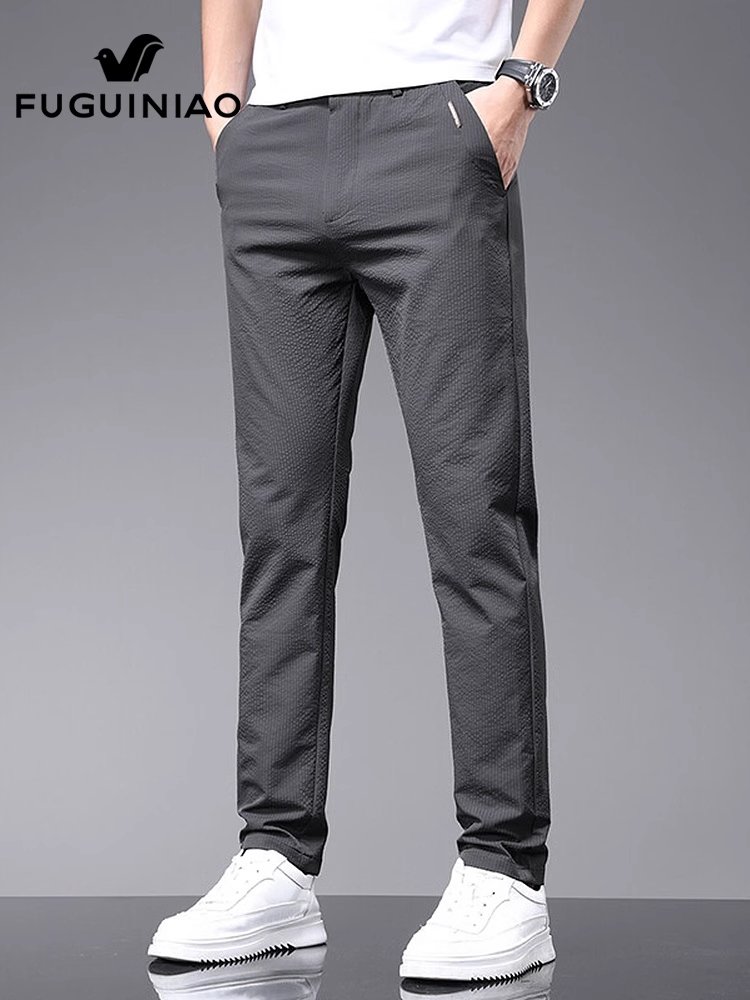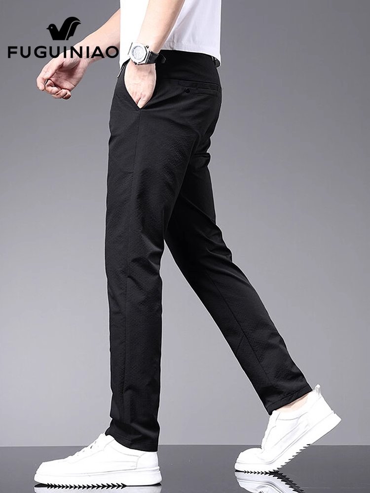 富贵鸟休闲裤男士凉感商务西装裤夏季薄款修身直筒长裤子男