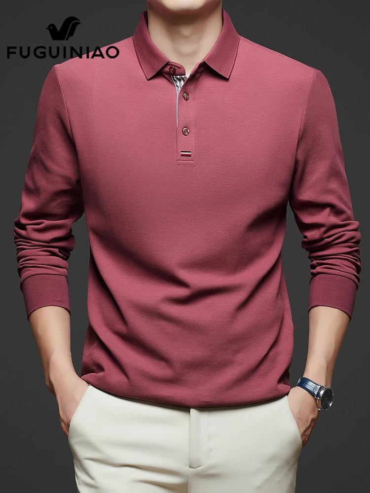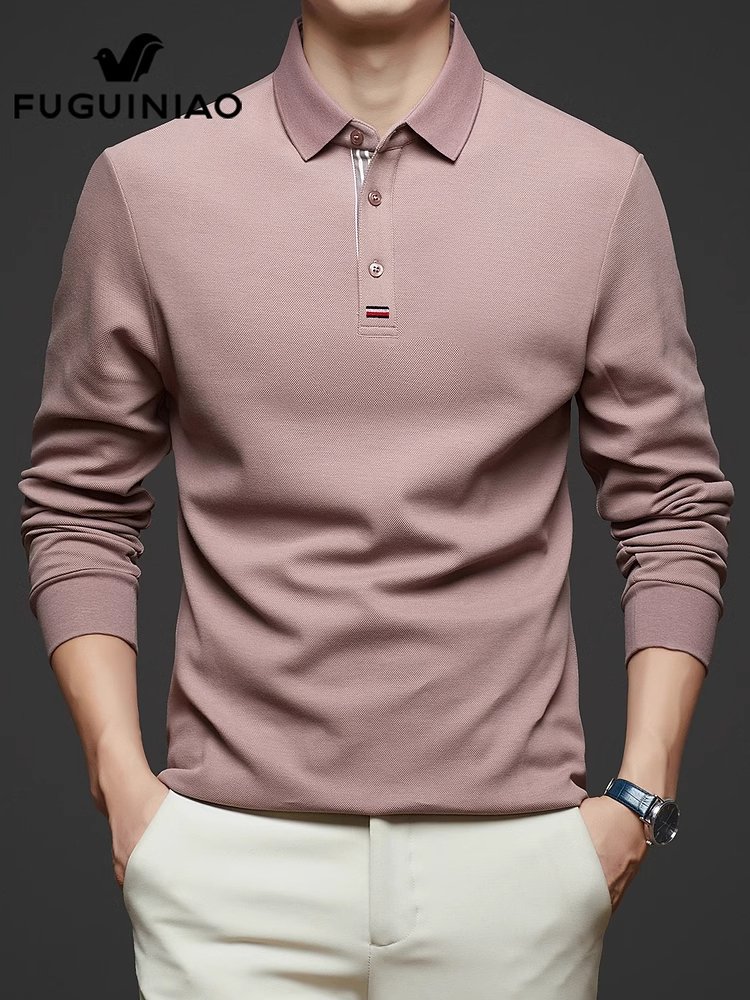 富贵鸟纯棉长袖t恤男士商务翻领上衣服春季新款宽松休闲Polo衫男