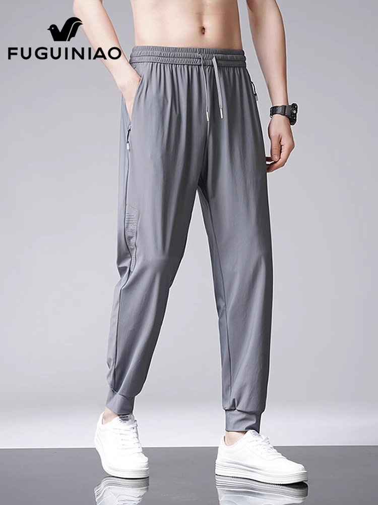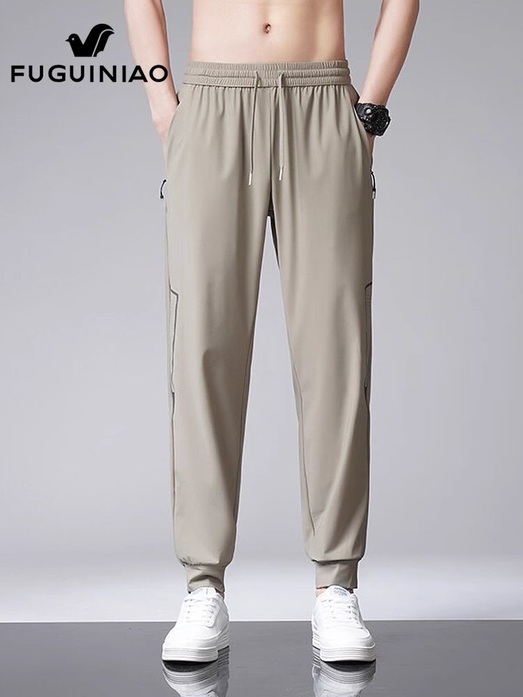 富贵鸟冰丝休闲裤男士宽松束脚运动卫裤夏季新款弹力黑色长裤子男