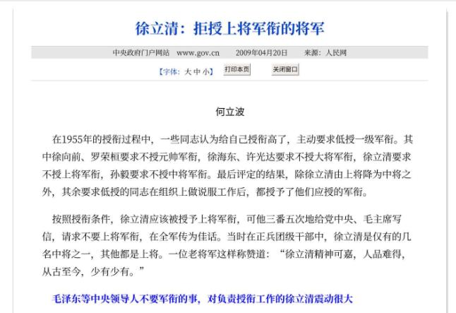 1955 年授衔仪式前夕,当时的总干部部副部长徐立清“私自”把自己的名字从上将名单改到了中将名单上。 这一行为很快引起了罗荣桓部长的注意,他找到徐立清,有些生气地呵斥道: “这是军委决定的,正兵团一级都授上将,你又怎么能随便更改呢?” 而彭老总得知此事后,也被惊动了,他一向铁面无私,对于徐立清的行为虽欣赏其高风亮节,但并不赞同。 彭老总认为授衔有客观标准,你是正兵团干部,按授衔要求就应该授予上将军衔,如果都不按标准来,随意调整,岂不是乱套了。 谁知徐立清解释说自己是总干部部的人,这次授衔理应给大家做个榜样!要是他的授衔低了,反而有利于做他们的工作。 其实我们都能看的出徐立清的行为并非一时冲动。 他深知 1955 年的授衔是解放军历史上的一件大事,同时也是一件特别困难的事情,要想让各方面都满意并不容易。 而他作为总干部部的工作人员,时常看到个别将领为了争取更高的军衔来到总干部部说情,便决定以身作则,主动要求降低自己的军衔,以便更好地开展授衔工作。 1929年,19岁的徐立清参加了红军。 当时,革命正处于最为艰难的时刻,武器极度匮乏,战士们手中的枪炮常常成为一种奢望。 很多时候,他们只能依靠野菜充饥,但徐立清心中的革命信仰从未熄灭。 他跟随部队南征北战,在反围剿的战场上,他冲锋陷阵,凭借着勇敢和智慧,一次次击退敌人的进攻; 在长征的漫漫征途中,他跨越千山万水,历经无数艰难险阻,却始终没有掉队。 1936 年,随红四方面军到达陕北后,他又参加了西路军。在战斗中失利后,他不幸被俘,但他并没有屈服。 在监狱中,他秘密成立临时党支部,积极组织狱中同志与敌人进行顽强斗争。 最终,他成功逃脱,历经千辛万苦找到了红军部队,继续为革命事业奋斗。 抗日战争时期,徐立清担任 129 师政治部组织股股长,在爷台山与王近山并肩作战,成功击败国民党的进攻,有力地保卫了陕甘宁边区。 他深知抗日统一战线的重要性,积极开展统战工作,争取各方力量共同抗击日本侵略者。 后来,他又担任陕甘宁晋绥联防军政治部主任,成功争取国民党 3000 人起义,为壮大抗日力量做出了巨大贡献。 解放战争时期,徐立清参与了延安保卫战、羊马河战役等众多关键战役,为保卫党中央、解放全中国立下了赫赫战功。 而新中国成立后,徐立清本可以凭借自己的战功,享受荣誉,追求更高的官职。然而,他却选择了一条截然不同的道路。 他将那些曾经的辉煌战功深埋心底,很少与人提及,更没有主动要求更高的职位。 他秉持着为人民、为国家无私奉献的初心,默默投身于新中国的建设事业之中。 徐立清的让衔行为,在周总理得知后对他的高风亮节赞不绝口;毛主席也不禁对他竖起大拇指,称赞他是我们党的好干部。 在他的感染下,许多原本对评衔有意见的将领纷纷放下心中的不满,心甘情愿地服从组织安排。 他用自己的行动诠释了共产党人的初心和使命,那就是将国家和人民的利益永远放在首位,个人荣誉则次之。 徐立清将军虽然已经离去,但他的精神永远活在我们心中,激励着我们不断前行,去创造更加美好的未来。