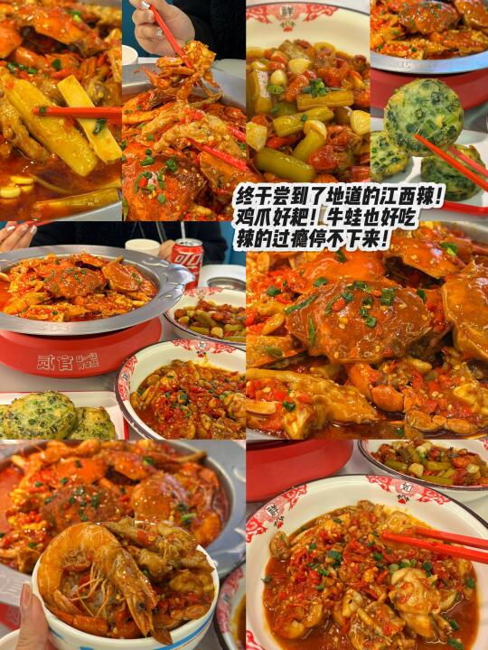 📍珠宝街也有很多小吃,人均几十解决午饭,晚上在吃了贰官肉蟹煲,让我见识了江西辣!几天来吃过最辣的~很过瘾!