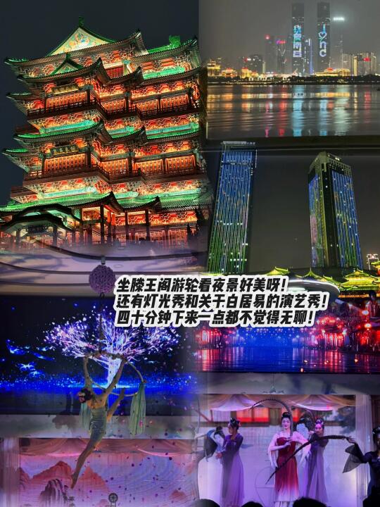 📍晚上夜游滕王阁一定要选带表演的游轮!八点多那趟!看夜景🌃灯光秀和表演,蛮有意思的