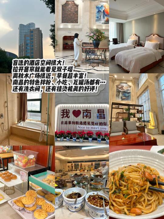 📍第一晚我们选了嘉莱特精选酒店秋水广场店,开窗就可以看见双子塔!早餐超丰富,拌粉瓦罐汤都有,还有可以看到江景的浴缸~