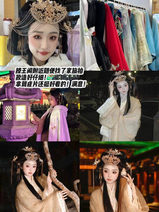 📍晚上要去滕王阁,时间还早就在滕王阁附近找了旅拍,强烈建议女孩子都整一套拍拍拍,我们就近找了家叫茶屿旅拍,化完妆雀食出片!拍完衣服可以继续穿只要在关门前还就可以了!