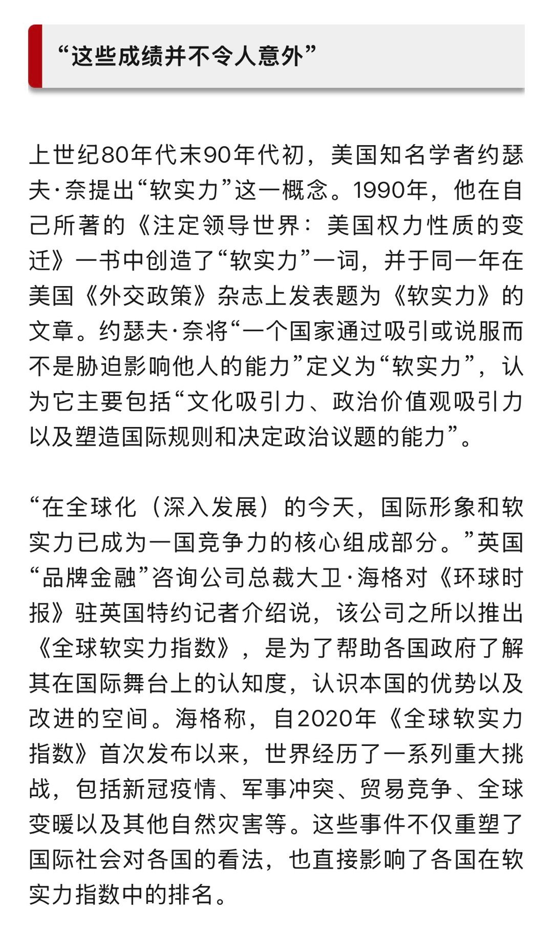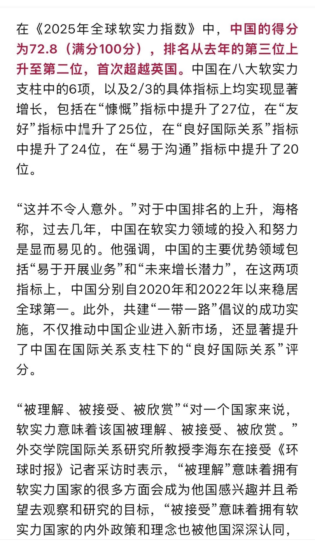 软实力第二,硬实力也是第二,但是,我门要说第二,谁敢说第一?我想说的是在有些软实力方面,比如对世界和平的贡献,特别是对第三世界国家的贡献和帮助,还没有人能比。