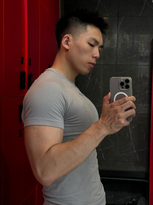 今天穿的很显胸肌 穿上感觉自己训练的时候都有点“膨胀”了