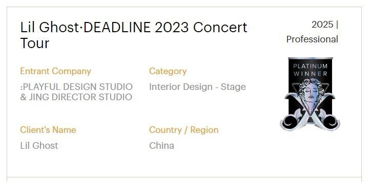 恭喜小鬼王琳凯 DEADLINE 2023 巡回演唱会荣获MUSE Design Awards Interior Design-Stage铂金奖🎉 小鬼演唱会的舞美真的一绝 看的出来小鬼在用心做演唱会