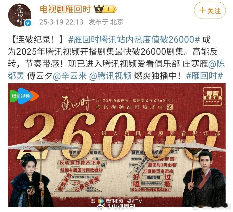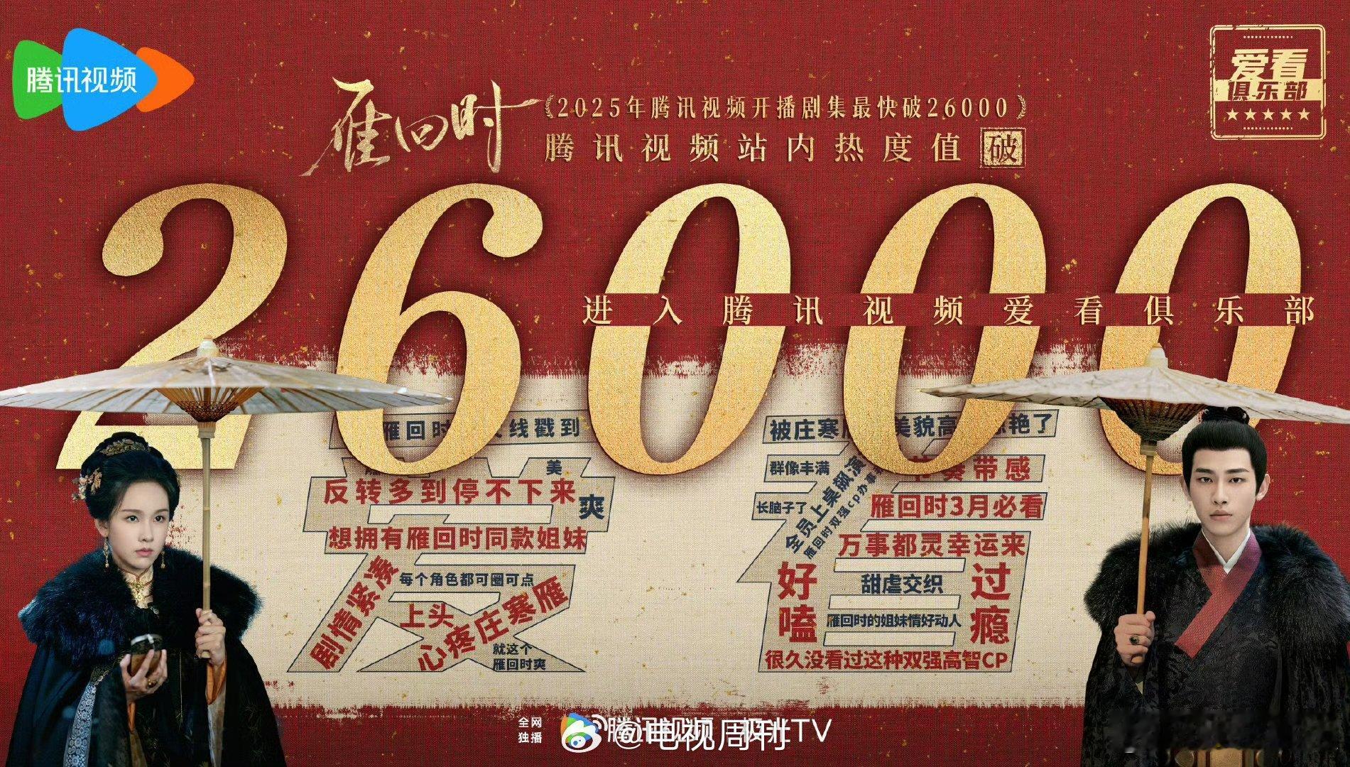 贵女站内热度破26000雁回时首播两日站内热度破26000贵女 听劝实力见证!《贵女》(《雁回时》)首播两日腾讯站内热度破26000,连破热度,惊艳众人!