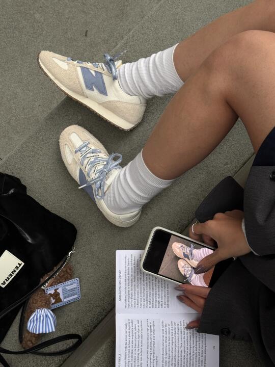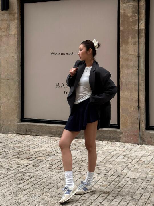 🩵3月过半 明显感觉天气暖和起来了 📅今天周三 宜搭一套干练高能量的时髦运动风 廓系外套百褶裙和复古薄底鞋是春天的衣柜标配 低饱和薄底鞋和双色鞋带也是把春日气息拉满 🚶🏻午休间歇去散散心 一杯咖啡的时间花完成本周的阅读量 做一些简单又很幸福的小事 为周中持续保持高能量 大家周三快乐(𝟘 𝟘)◞︎