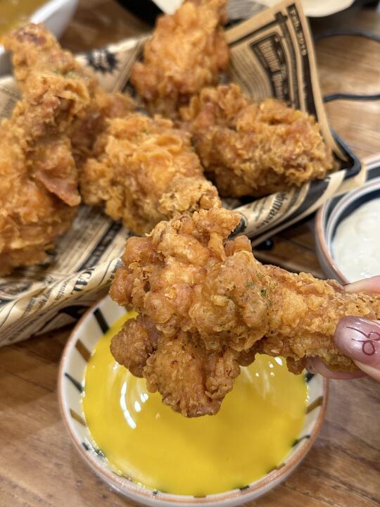 很治愈温暖的小店~ 老板是个年轻帅气的韩国人~ 坐在窗边吧台边发呆、边听着他们说着听不懂的韩文治愈系的氛围下感觉自己在拍着韩剧呢~😂 炸鸡和猪排真的很好吃呢、本来以为只是个漂亮店没想到餐食这么便宜还好吃~