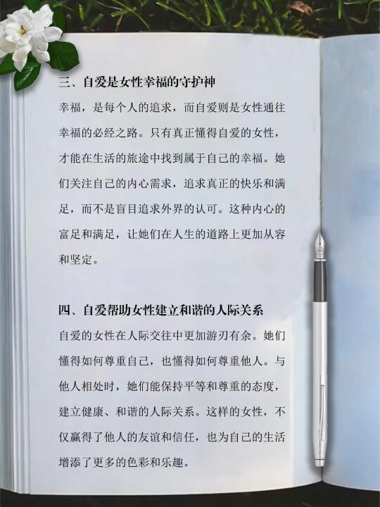 自爱的女性在人际交往中更加游刃有余。她们懂得如何尊重自己,也懂得如何尊重他人。在与他人相处时,她们能保持平等和尊重的态度,建立健康、和谐的人际关系。这样的女性,不仅赢得了他人的友谊和信任,也为自己的生活增添了更多的色彩和乐趣。