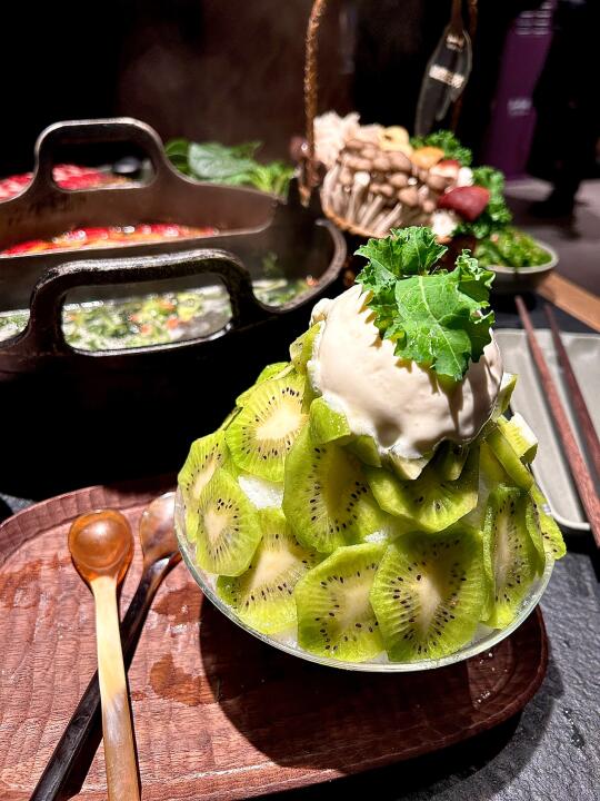和小姐妹排队差点吵架的火锅店🍲 还好排到了!真的不冤枉等这么久~ 直接给姐妹们推荐下⬇️ 这里的牛肉🥩非常嫩!基本都不踩雷!盲点可以。 麻薯糯叽叽的超级好吃😋微甜不会腻!餐前刚刚好~ 这个奇异果🥝冰沙真的爱了!好解腻啊!火锅吃完吃这个太舒服了! 还有好多菜品都还没尝试!下次接着冲!