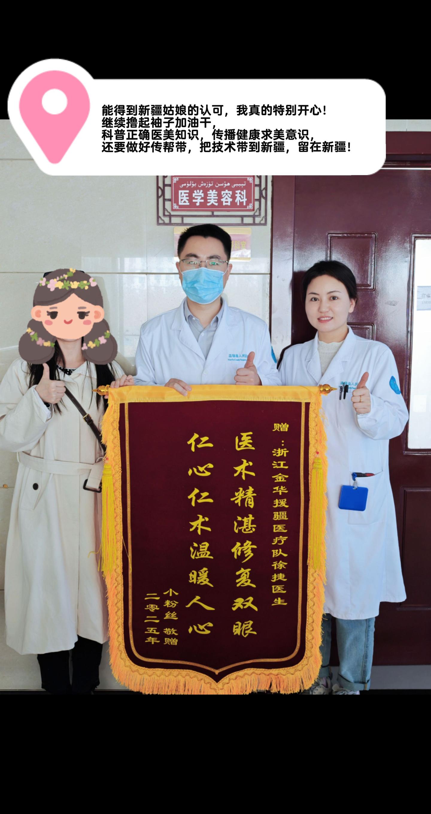 援疆之收到锦旗啦。能得到新疆姑娘的认可,我真的特别开心!继续撸起袖子加油干,科普正确医美知识,传播健康求美意识,还要做好传帮带,把技术带到新疆,留在新疆!