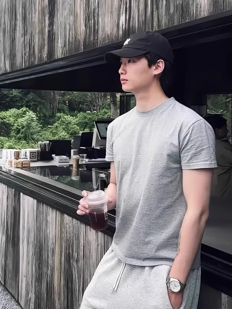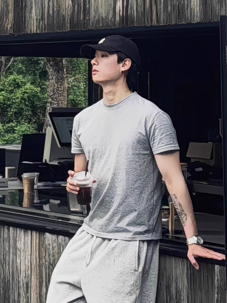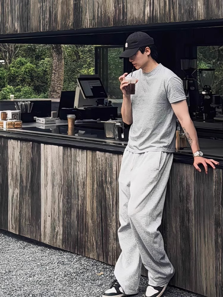 cleanfit花灰色小领口短袖男款300g重磅索罗娜t恤美式纯棉半袖