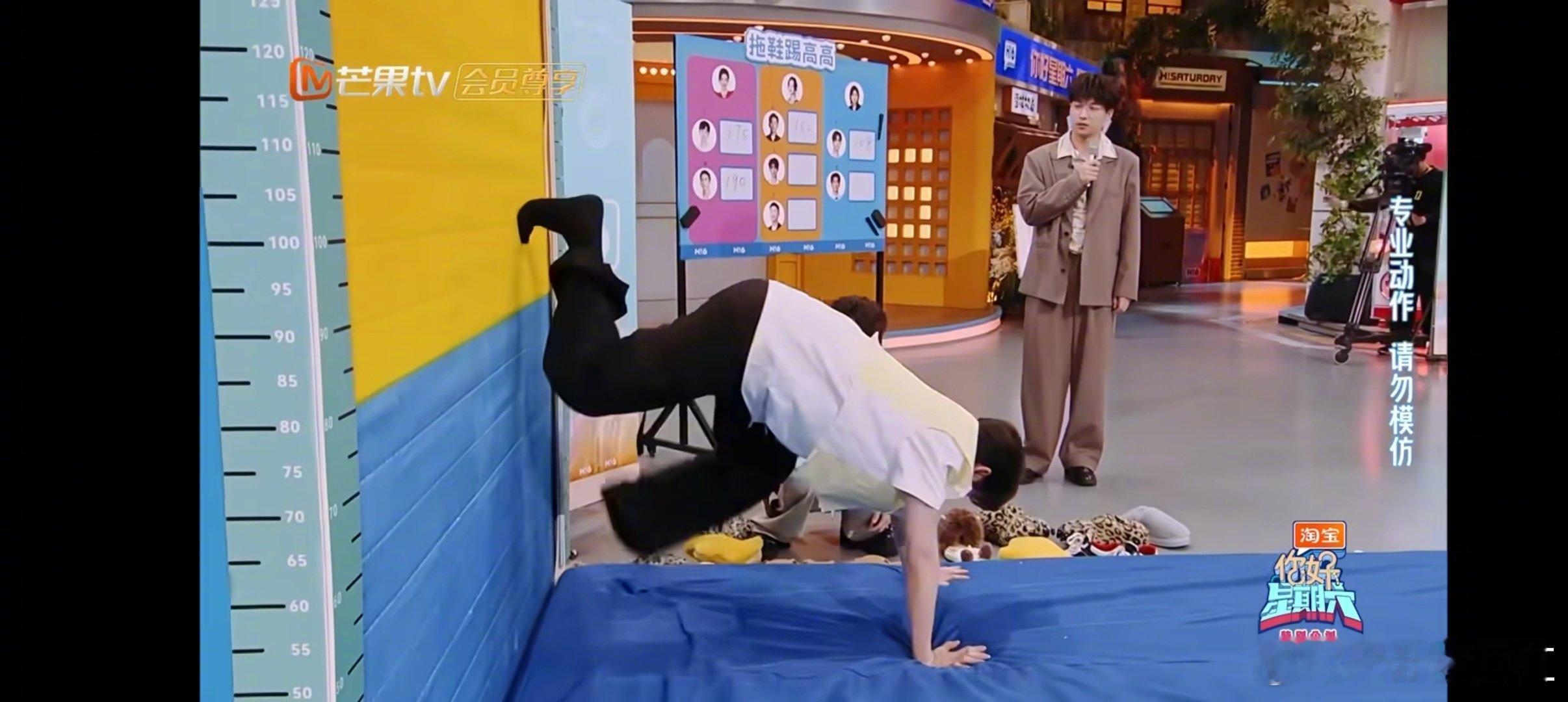 丁程鑫单手倒立你好星期六看丁程鑫如何驾驭拖鞋踢高游戏,单手倒立,帅气十足!