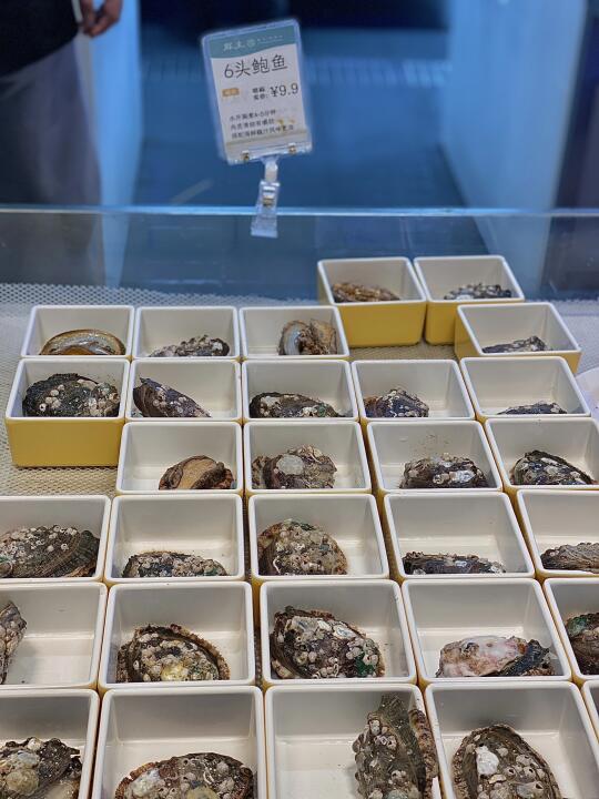 牛肉在前,海鲜在后,他们家在9.9的海鲜产品区域,还有多海鲜,海星、老虎蟹、北极裙边、海地龙、六头鲍、天鹅蛋等等。