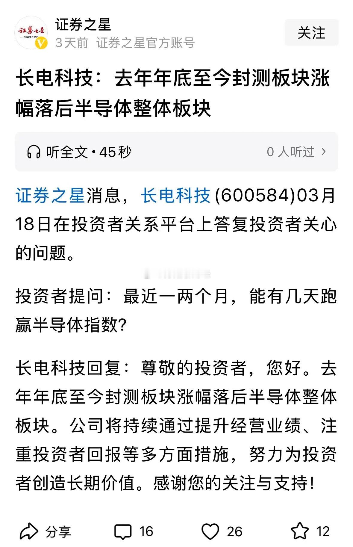 长电科技自48元的价格跌至36元,跌去将近12元的价格,或跌幅近30%。长电科技回复确实官方,称封测行业的的涨幅低于半导体整体板块,公司注重投资者,努力创造长期价值。长电科技目前将近650亿元的市场值规模,现价也比华润入主的价格贵得多,其股价表现大股东的投资回报率没有问题。