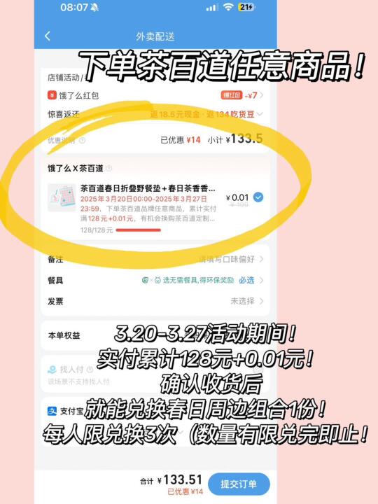 3.20-3.27活动期间!实付累计128元+0.01元!