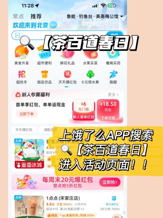 直接上攻略!上饿了么进入商家页面找到茶百道