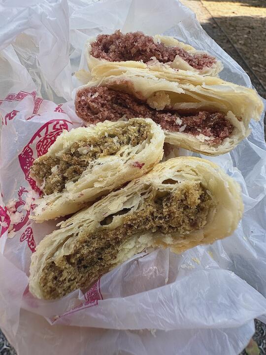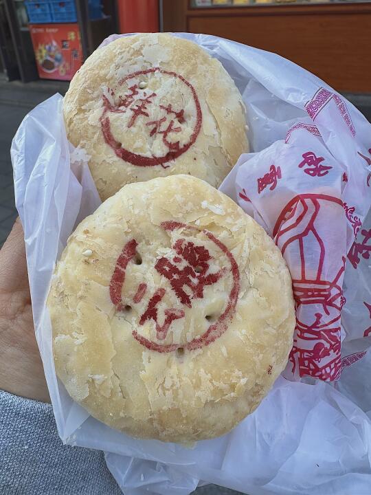 来苏州旅游记得买这家,苏州的老字号 酒酿饼只有这个季节才有,玫瑰和豆沙味,我更爱玫瑰~ 袜底酥咸香,酥到掉渣!!!