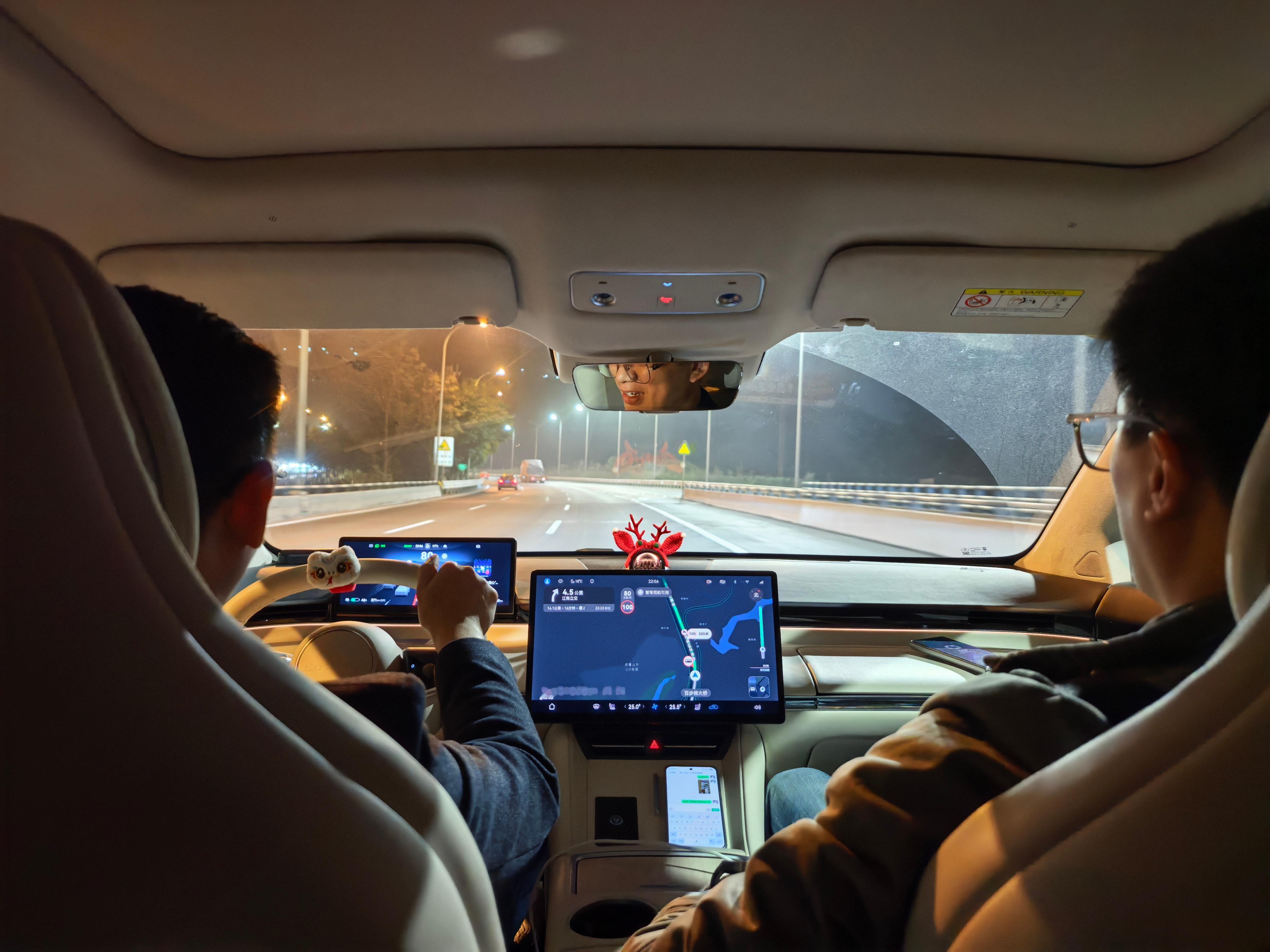 虽然我有智界R7,但还是第一次坐R7后排,真挺舒服,平常在家全是我开车都没坐过二排[允悲]还给散射体整了个圣诞帽,果然数码博主的智驾比例都好高[doge]