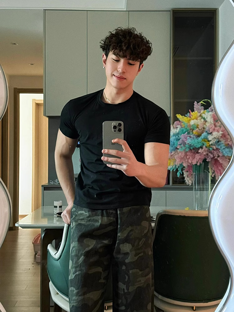花灰色液氮空气层正肩短袖男款夏季美式b