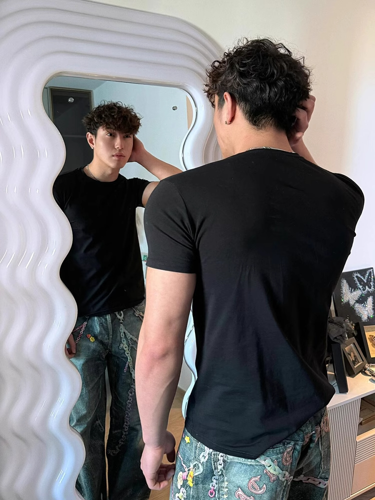 美式高街涂鸦印花短袖男款夏季小众设计感