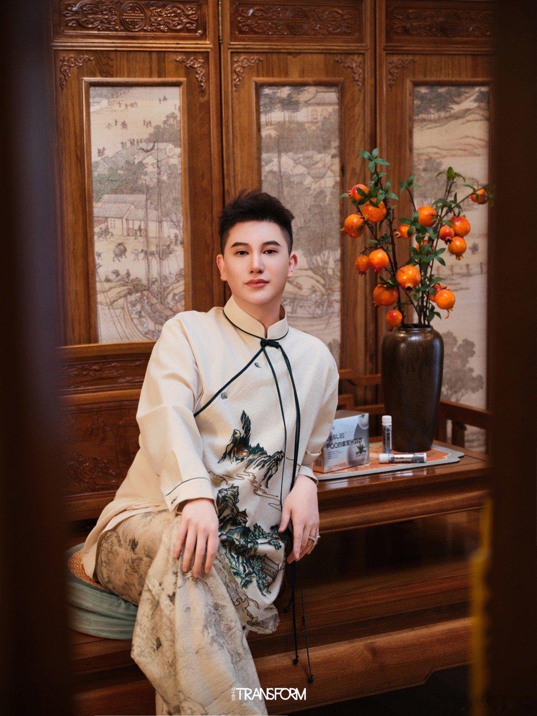 3月15日,明星企业家、 创始人新中式生日大片曝光,身着黑白两色新中式服装,立于回廊间,与身后错落的院落景象形成虚实交叠的层次,尽显韵味。