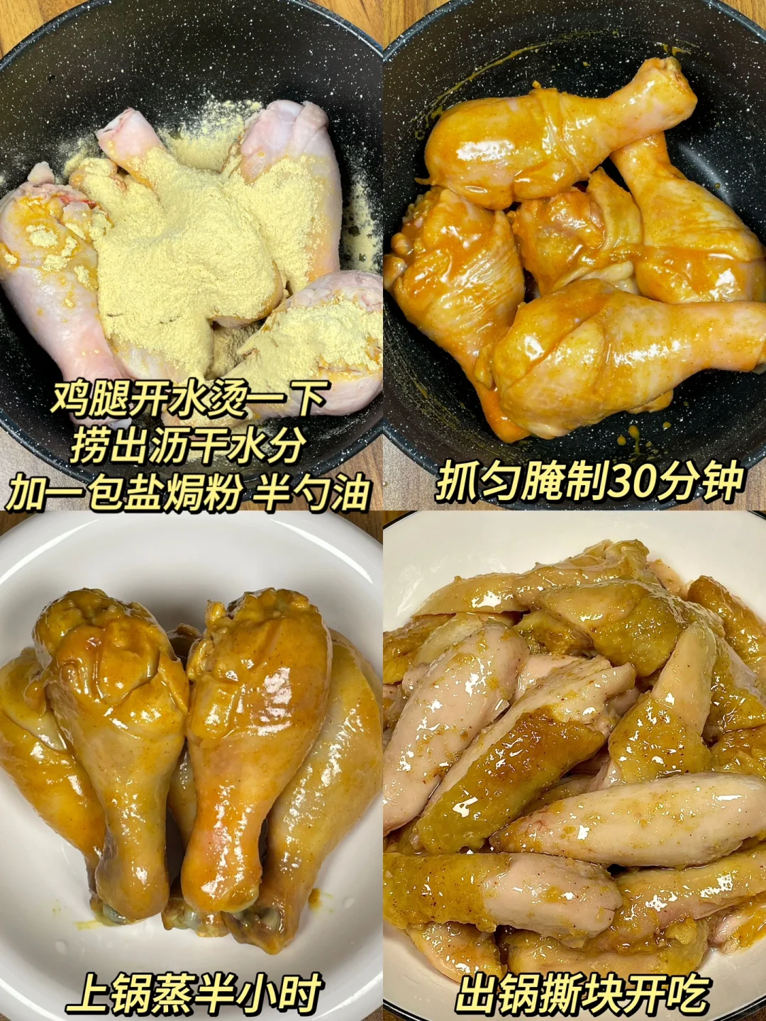 超好吃的盐焗鸡腿[色色R]一定要试试!! 鸡腿鲜嫩多汁又入味,好吃不腻绝绝子!一出锅就香迷糊了[哭惹R]大人小孩都爱吃,求你们都去做!! [向右R]做法:如图5️⃣所示!