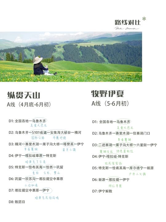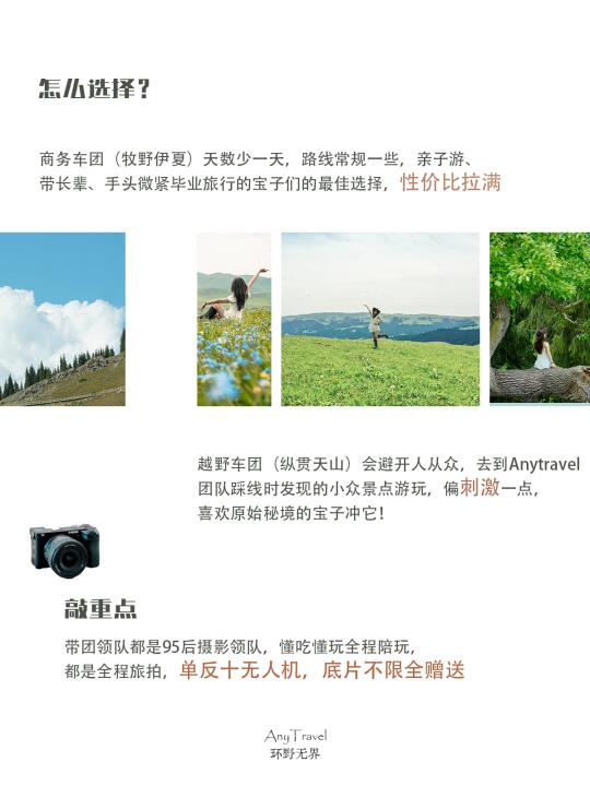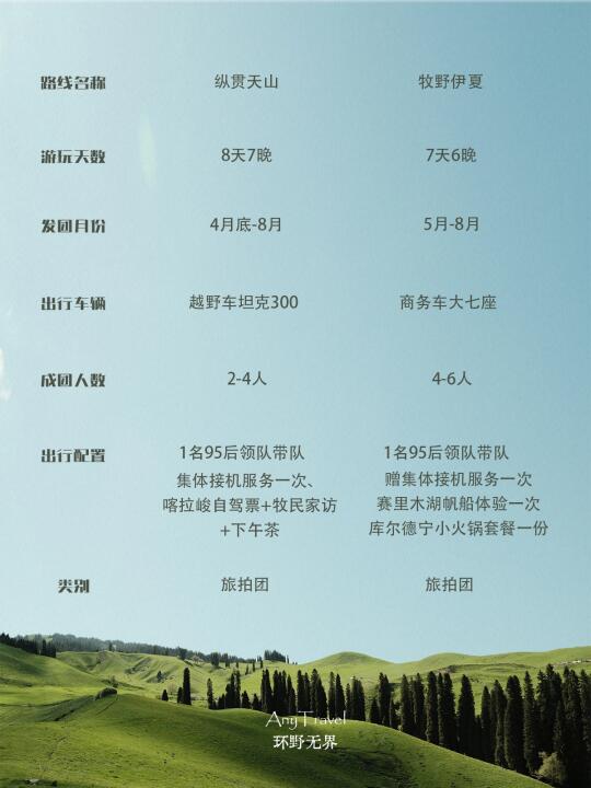 4️⃣关于价格,纵贯天山(越野车团)6k起;牧野伊夏(商务车团)5k起,目前都有早鸟价优惠哦🔥