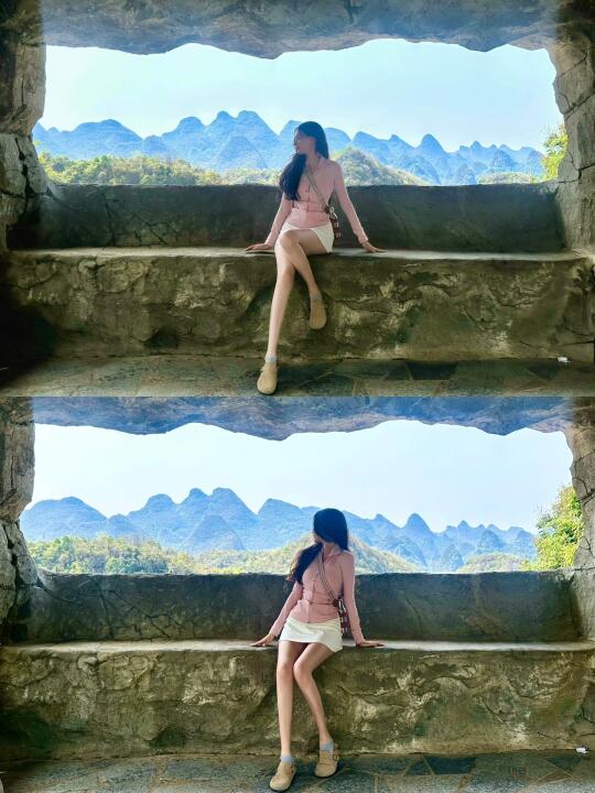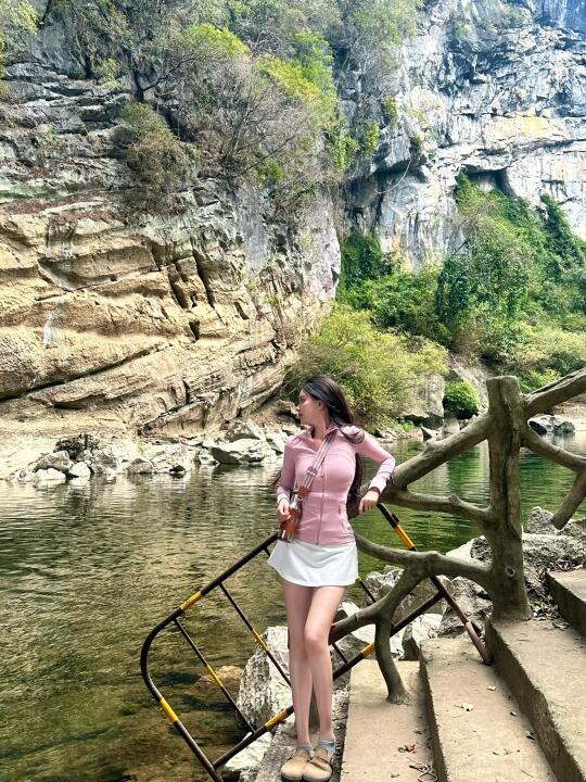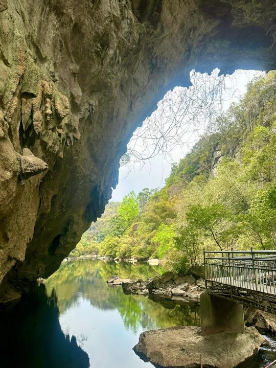 我在广西有很多行程 旅行箱忘记带上运动鞋了 徒步走的还挺困难🫥溶洞门口有很多台阶 很容易打滑摔跤 我就摔了一跤😓