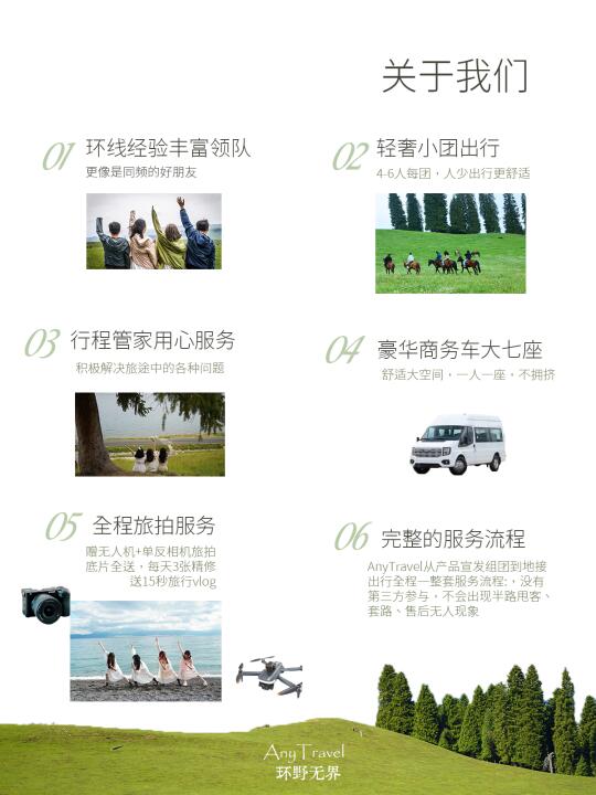 并非走马观花式的传统游览方式,而是选择1-2个地方深度体验,全程不赶路、不早起💤不拘泥于每日冷冰冰的行程单🧾,我们喜欢探索旅行中的随机性,留足时间交给你自由探索,你可以全身心地感受与体验自然