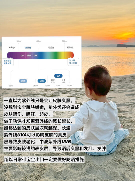 以前不懂,去海边从来不做防晒,以为孩子晒一晒没事。等回到家后发现宝宝的皮肤一块红一块黑的才知道,原来宝宝的肌肤屏障比较脆弱,更需要做好防晒🌞