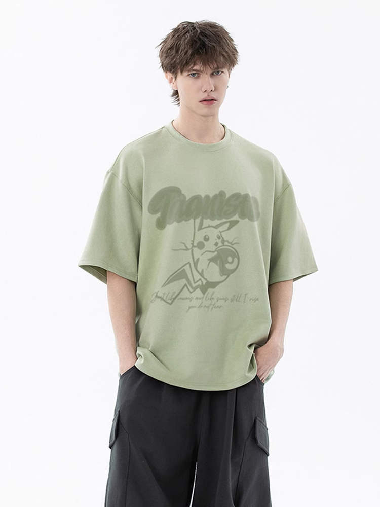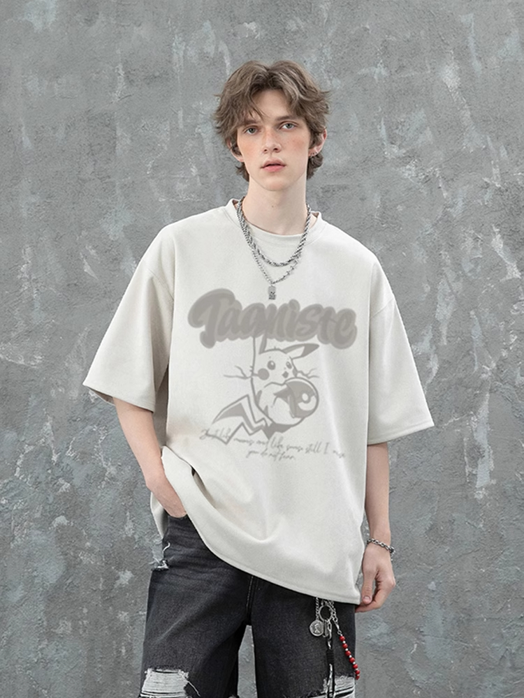 麂皮绒卡通动漫短袖男款夏季美式高街重磅t