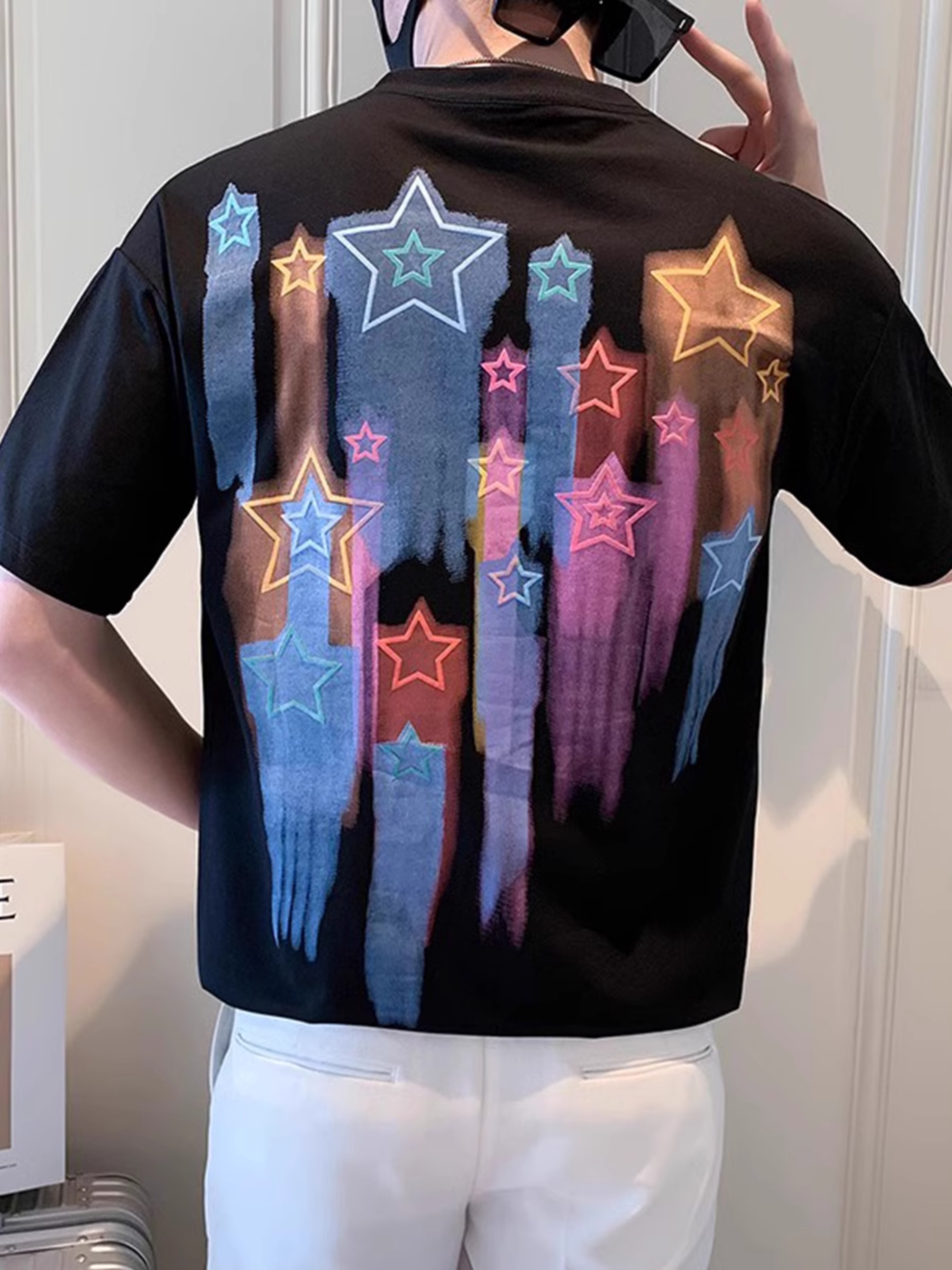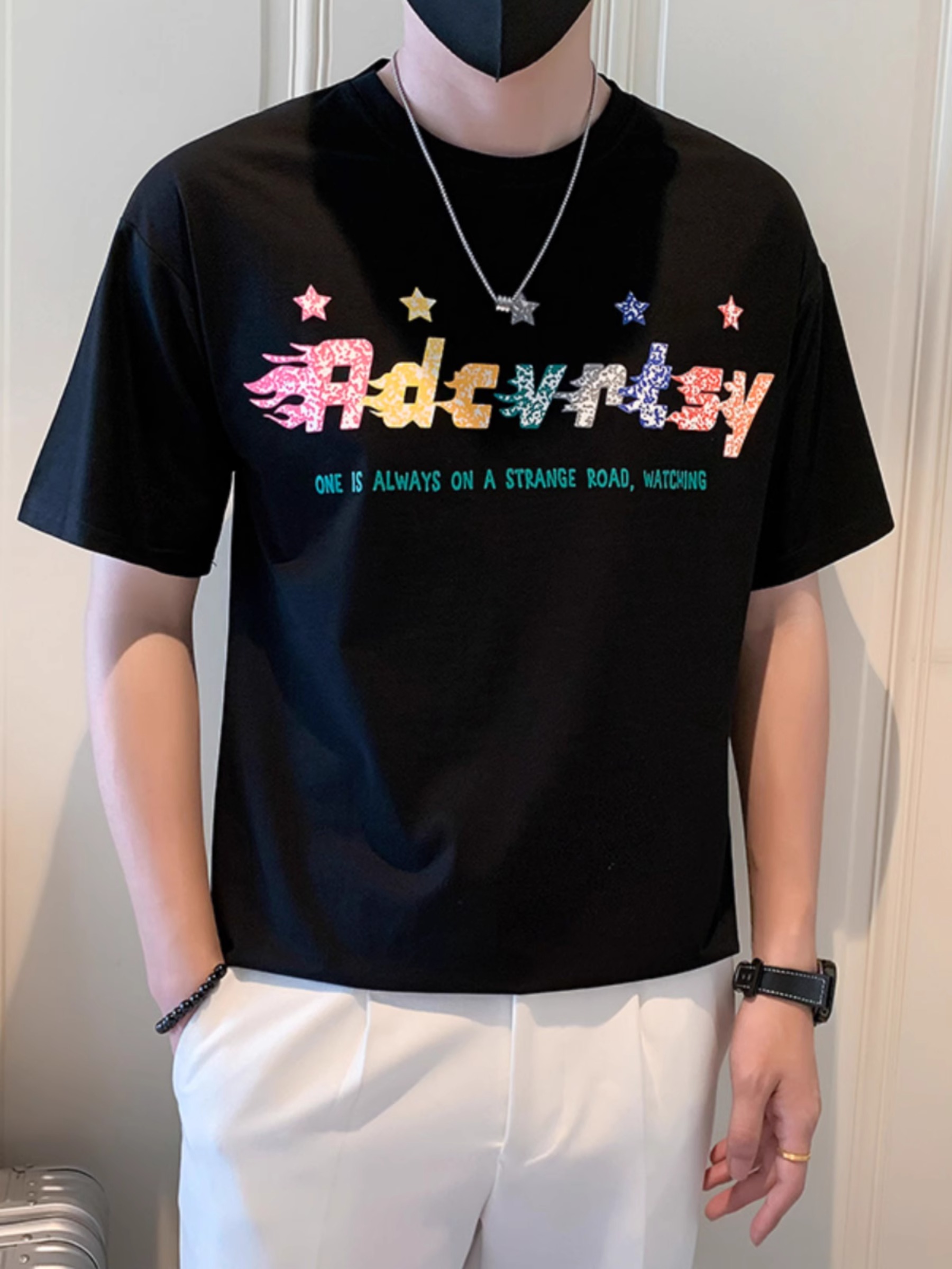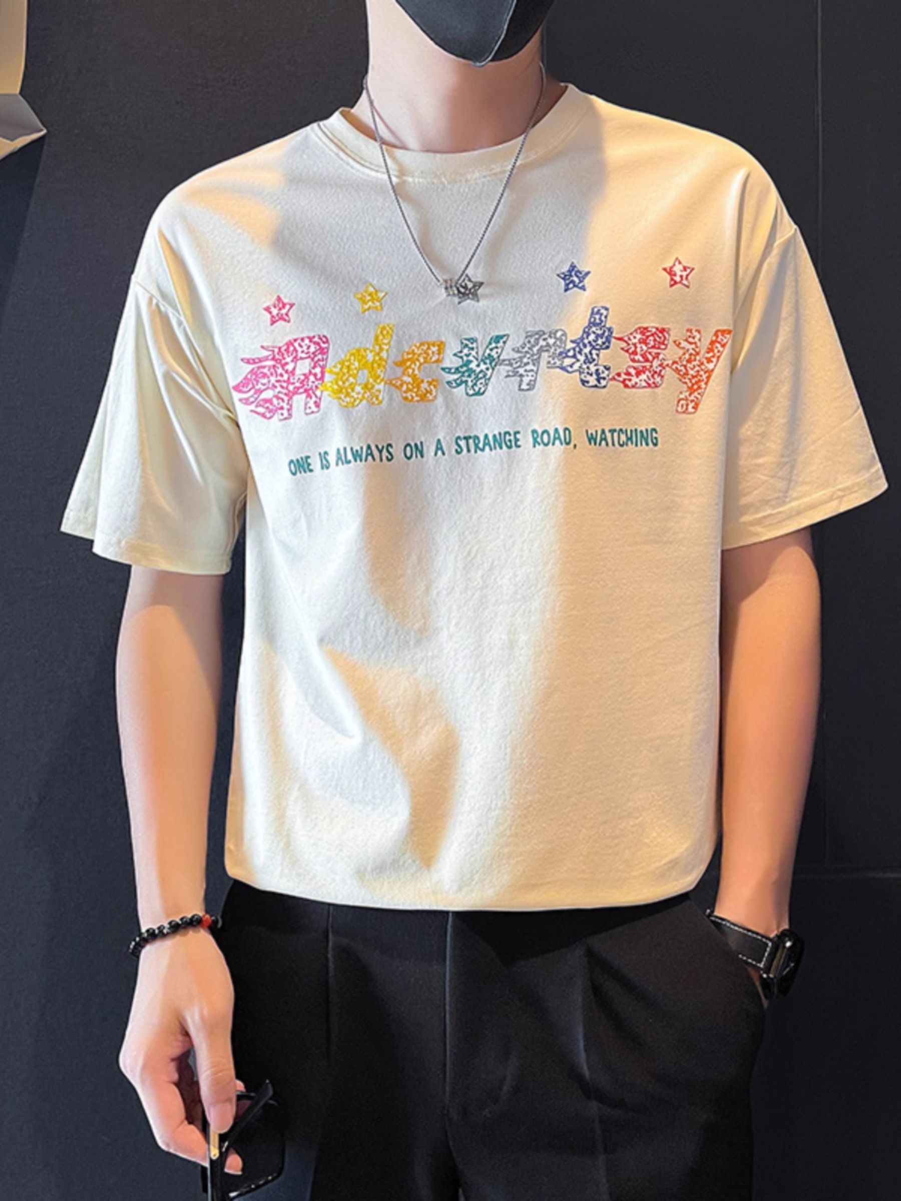 字母印花小领口短袖男款夏季阳光干净重磅男