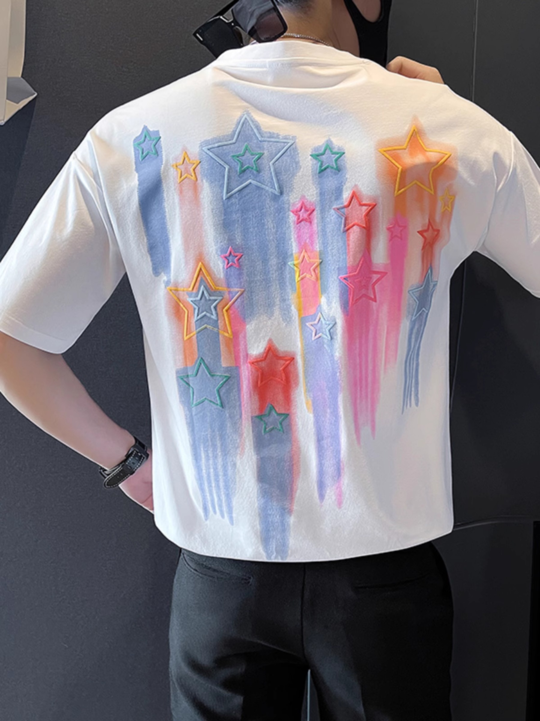 花卉刺绣短袖男款夏季学院风情侣穿搭纯棉t