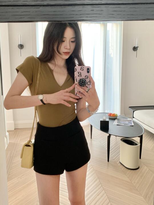 这套短裤真的巨显腿长‼️💦 咖色和黑色都很百搭‼️ 穿上直接腿长两米‼️