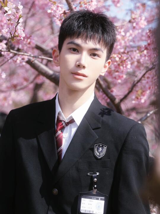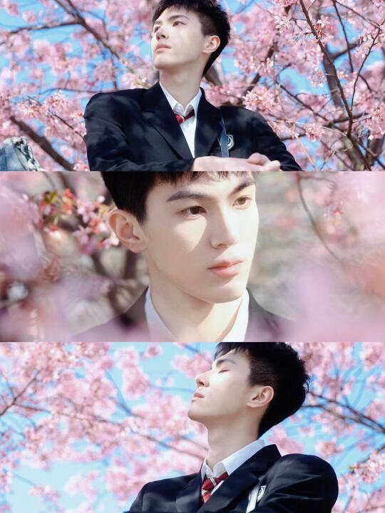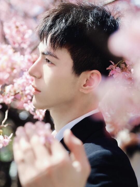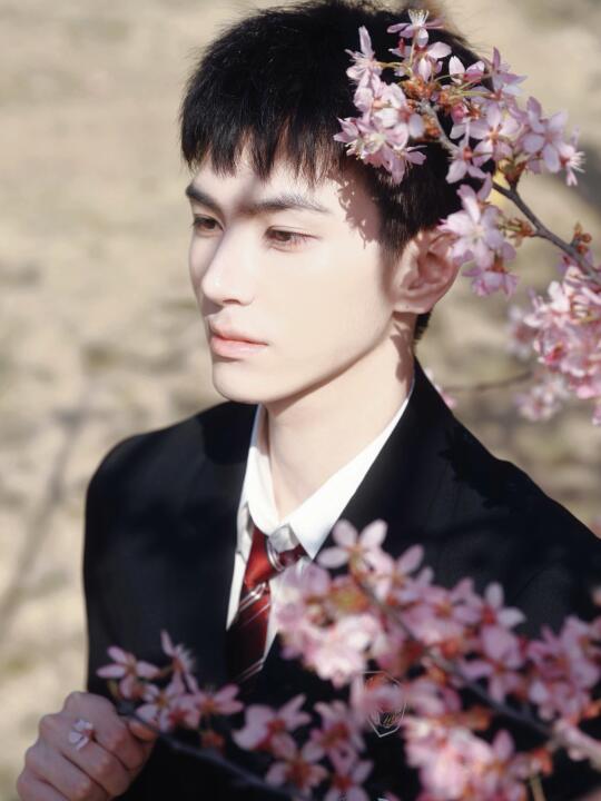 风拂柳,粉樱绽放,我身着浅粉蕾丝旗袍,立于古栏之下。长袖轻笼,盘髻缀珠,耳坠摇曳
