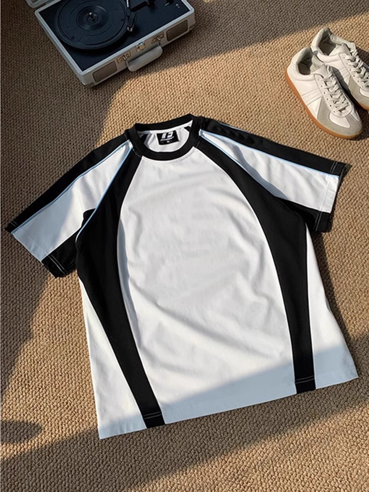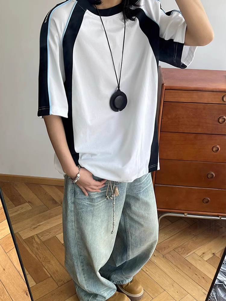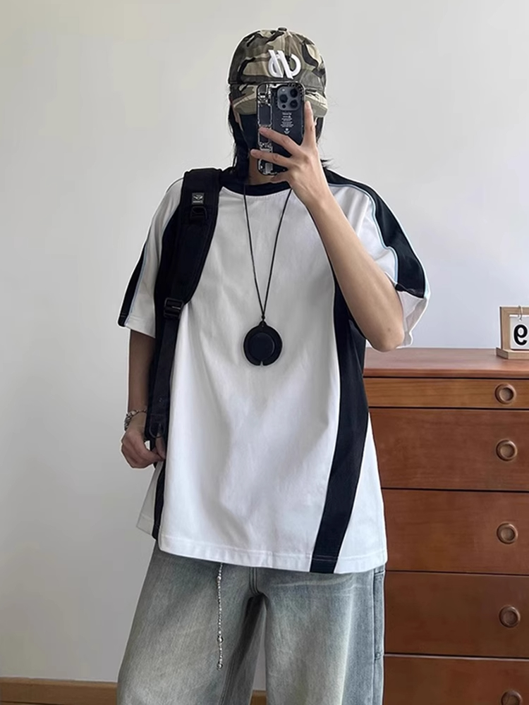 解构撞色拼接短袖男款夏季美式痞帅高级感t
