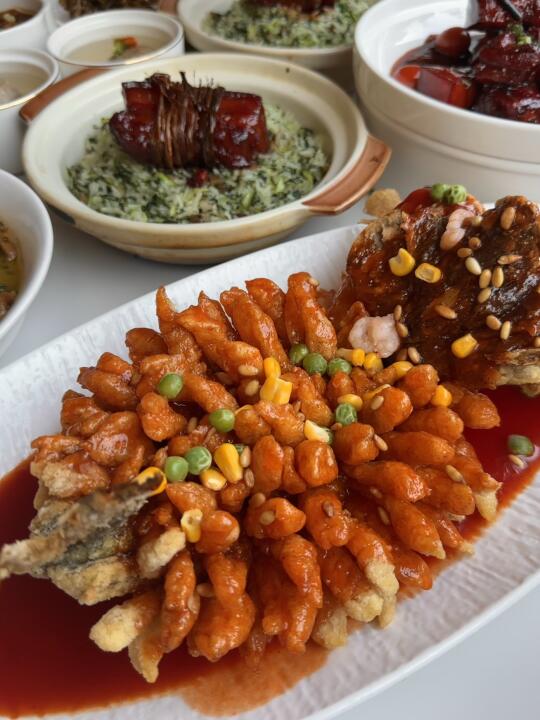 蚌肉金花菜,很鲜很嫩 松鼠桂鱼酸甜的, 还有菜饭,感觉苏帮菜也蛮好吃的啊, 不像网上说的这样啊😅😅😅